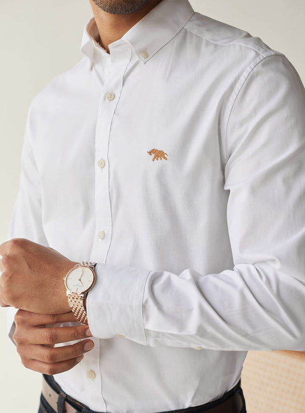 Presenting a semi-formal shirt from our signature line-up of oxfords. Timeless & versatile, this shirt is entirely made from a rich Indian cotton in an oxford weave. The oxford weave gives it a fine texture, makes it breathable & enhances durability. Features a button-down collar & Rajan, the mark of Andamen.
