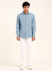 Presenting a timeless indigo shirt, made entirely from a rich Indian cotton in a textural dobby weave. This classic garment is enzyme washed to achieve the right color tone, richness & depth. This process breaks down the garment, making it super soft & giving it a gorgeous faded look. Your Indigo shirt will fade with each wash, ageing beautifully over time. Features a mandarin collar & Rajan, the mark of Andamen.