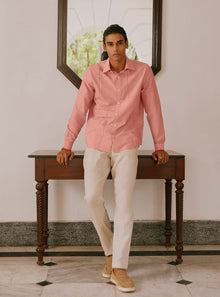Introducing the Jaipur Cotton-Silk Shirt, a contemporary style rooted in Indian heritage.This shirt is crafted from a luxurious blend of handspun cotton and mulberry silk, epitomising true elegance in a popular pink-salmon hue. It features exquisite fagotting details that add depth to the garment, while intricate openwork stitching creates a delicate pattern, making it a standout piece.While the silk lends a lustrous sheen and exquisite drape to the garment, the cotton adds to its overall softness and durability, ensuring an indulgent hand-feel and wear experience.Built on a legacy of excellence, each hand-crafted piece features minor variations in shade and texture, making it truly one-of-a-kind.Part of the MIRAI collection, where contemporary styling meets heritage fashion.