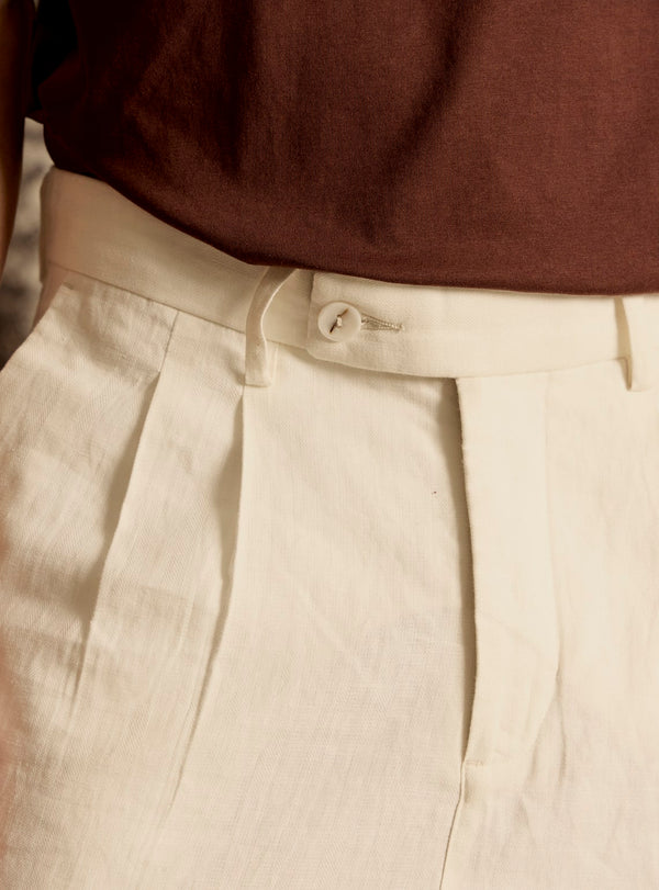 Off White Linen Blend Pleated Trousers Off White Linen Blend Pleated Trousers