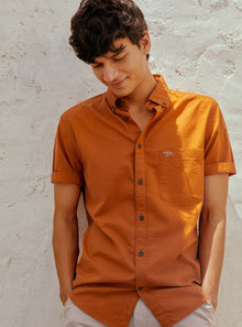 Timeless, Comfortable & Breezy in every sense of the word. Presenting a casual shirt, made entirely from a rich Indian cotton in a breathable seersucker fabric. The beauty of seersucker fabric is its unique texture that's naturally wrinkle-resistant, prevents fabric cling and promotes airflow. Features a button-down collar & Rajan, the mark of Andamen.