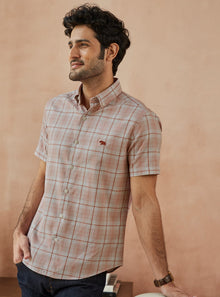 Coral Frost Check Half Shirt