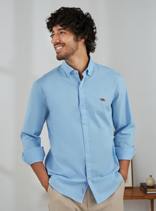 Presenting signature oxford shirts in differentiated wardrobe friendly colors. Made from a rich Indian cotton. The Oxford weave pattern enhances the comfort & durability of the garment. Featuring Rajan, the mark of Andamen, along with unique, serendipitous detailing on the inner placket. Designed to be truly versatile, they can be easily paired with chinos, denims, or joggers.