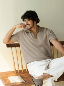 Almond Grey Knit Polo