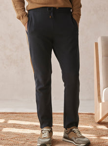 This jogger is crafted from a blend of locally sourced cotton, the superior quality of the yarn combined with our meticulous craftsmanship ensures your garment is as comfortable as it is long-lasting. Features a gold finish, & colour block properties.