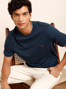 Blue Men's Solid Crew Neck