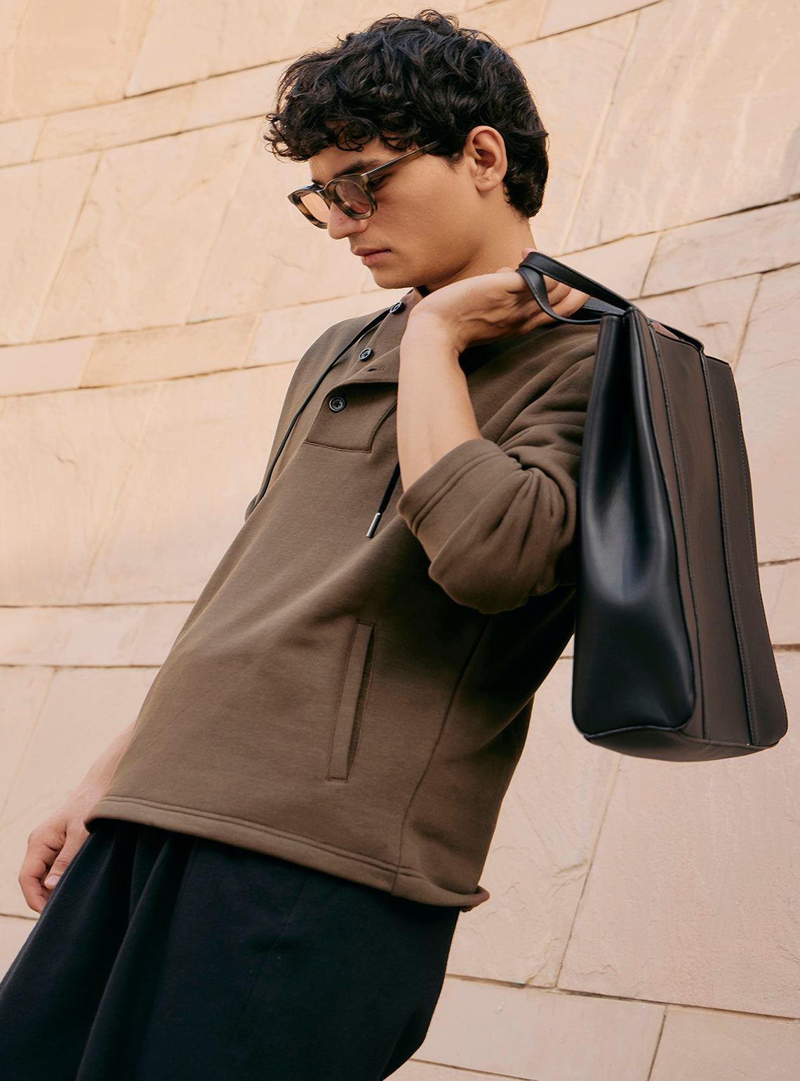 Tailored for comfort, finished for sophistication. This triblend hoodie features double pockets and a structured drape — an elevated everyday piece that balances ease with presence. Crafted for moments of movement and stillness alike.
