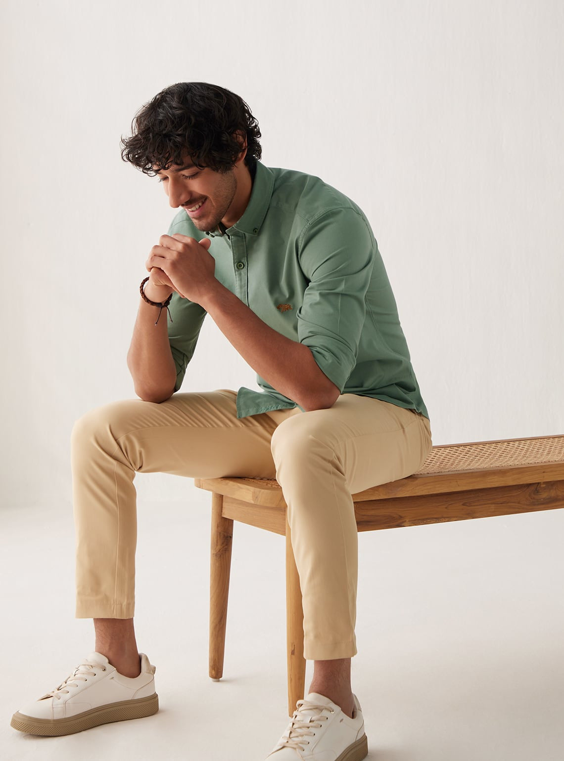 Presenting a casual shirt from our signature line-up of oxfords. Timeless & versatile, this shirt is made in a Cotton Spandex blend in an oxford weave. The oxford weave gives it a fine texture, makes it breathable & enhances durability. Features a button-down collar & Rajan, the mark of Andamen.