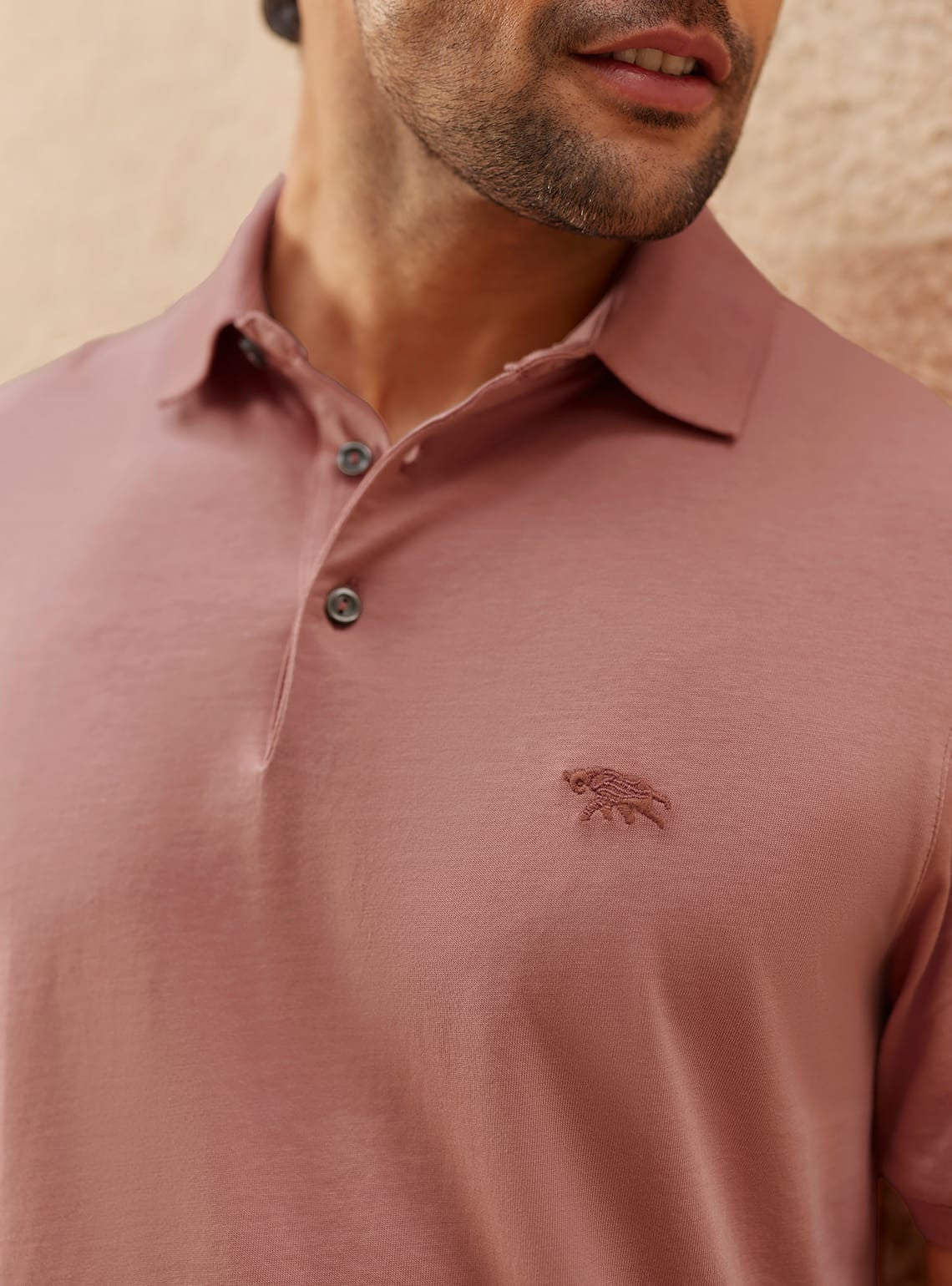 This polo is meticulously crafted from compact cotton in a single jersey structure, ensuring comfort and durability. Designed in a half-sleeve silhouette, it not only provides sophistication but also features a gold finish, & Rajan, the mark of Andamen.