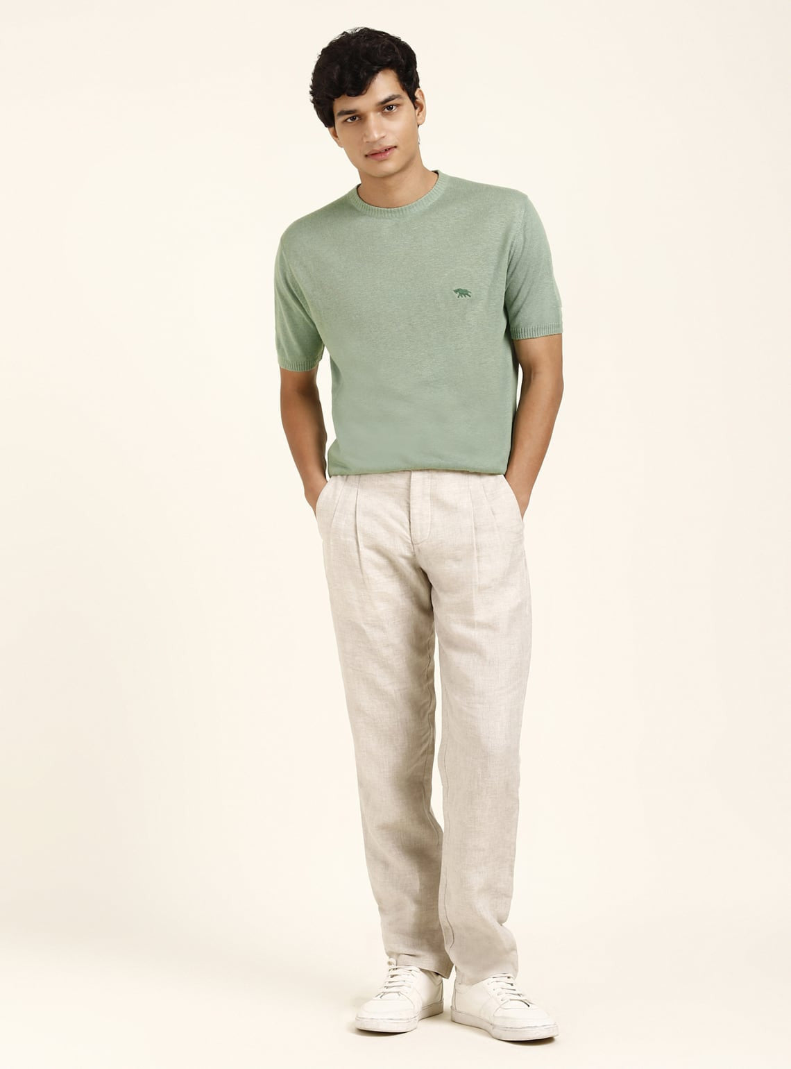 Introducing pristine and refined flat-knits. Made from a linen-viscose blend in a timeless color and single jersey structure, ensuring flexibility and comfort. Preferable care: Machine wash cold, do not line dry, store folded, lay flat to dry and gentle cycle. Features a crew neck & Rajan, the mark of Andamen.