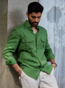 Timeless, soft to touch & naturally breathable. Our iconic linen shirts are back for another season. Crafted entirely from one of Earth's friendliest fibers, linen from European flax, a super crop that requires zero manual irrigation, is 100% bio-degradable & enriches the soil as it grows. Features front flap pockets, a button-down collar & Rajan, the mark of Andamen.