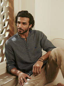 - Fabric buttons, Rajan embroidery at chest