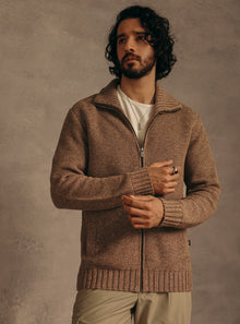 A bomber jacket in heavy melange cotton honeycomb knit. Finished with a zip front and secure pocket openings for functional ease.