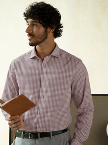 Presenting a formal shirt in a gorgeous red color. Made entirely from a rich Indian cotton with enhanced stretch. The goodness of the silhouette combined with the craftmanship, truly makes it a timeless style. Built in a mid-weight fabric, this shirt features a small point semi cutaway collar & insignia embroidery on cuffs.