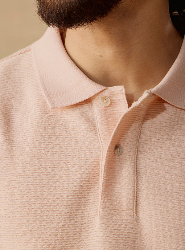 Designed in a breathable cotton-blend jacquard weave, this summer polo features a subtle raised pattern that adds depth without the weight.