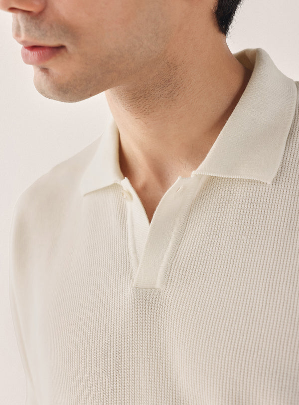 Woven from 100% Indian cotton of remarkable purity, this textured polo delivers understated refinement. Naturally soft and breathable, the fabric offers a smooth, enduring wear. It resists fraying, minimises creasing, and holds its colour over time.