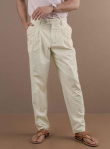 Your path to being right-now-cool. Introducing air-light pleated casual pants, constructed to a 30x30 mechanical stretch twill that weighs in at 200 grams per square meter. It is just right weight that gives a superb flow and makes you feel like you've worn (almost) nothing at all. The is designed for comfort - wider through the thighs but slim from calf to cuff????with just pleats that are clean, crisp and easy to adjust to for newcomers.