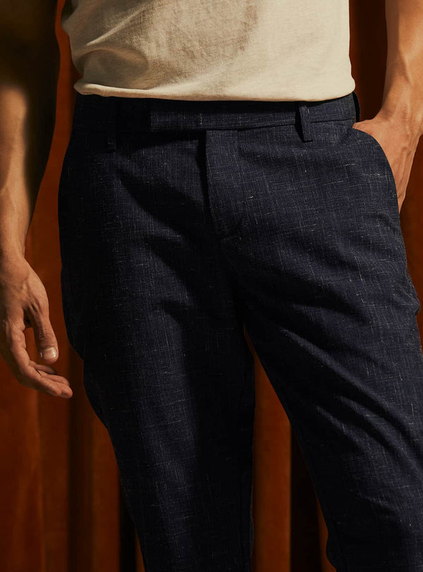 This trouser is crafted from a wool-poly-linen blend ensuring the garment is comfortable as it is warm. Built to make you look sophisticated, this bottom will stand the test of time. Features textured fabrics.