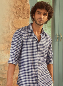 Royal Blue Check Linen Shirt