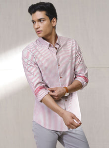 An excellent addition to your business wardrobe. The red and white stripes are woven in a superfine 80sX80s oxford fabric. The high count of this luxurious oxford gives the fabric excellent colour depth and lusture. Pairs best with shades of grey, navy and brown.