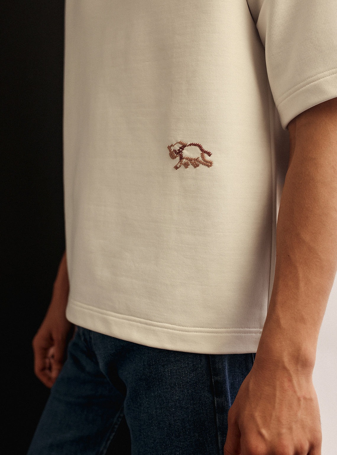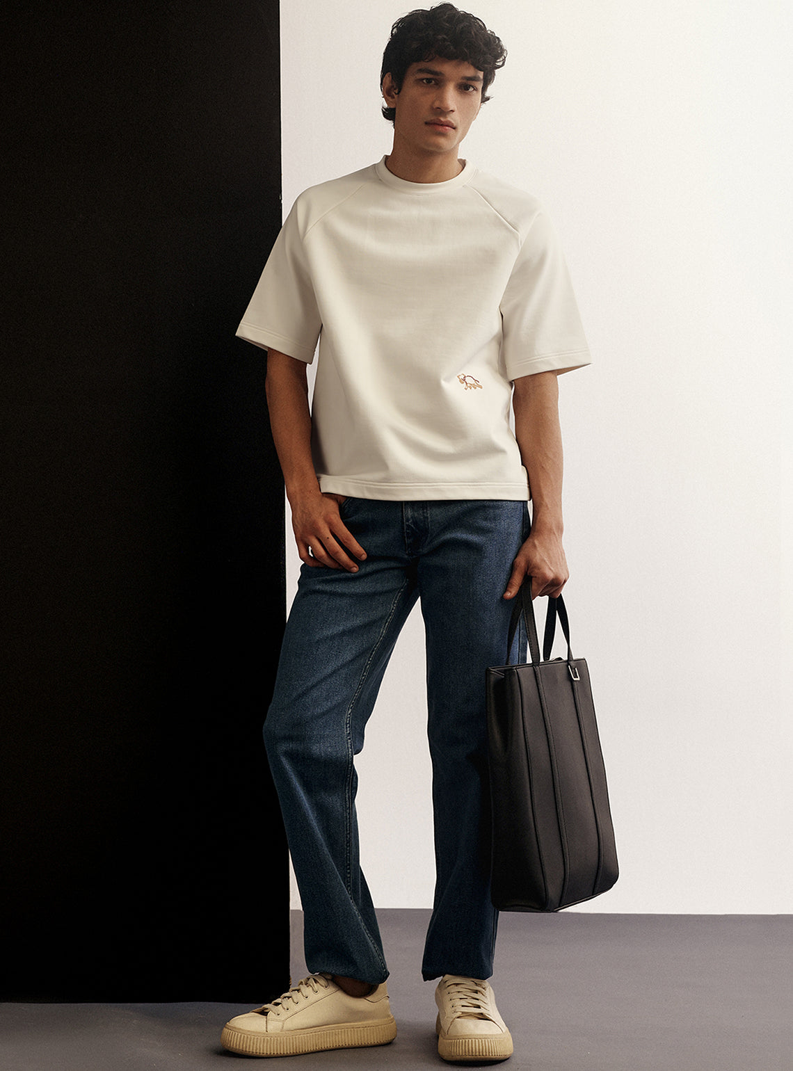 Woven from 100% Indian cotton of remarkable purity, this crew delivers understated refinement. Naturally soft and breathable, the fabric offers a smooth, enduring wear. It resists fraying, minimises creasing, and holds its colour over time.