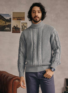 A turtleneck pullover in grindle melange cotton for tonal depth. Built with multiple knit structures for rich surface texture.