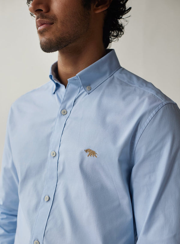 Presenting a semi-formal shirt from our signature line-up of oxfords. Timeless & versatile, this shirt is entirely made from a rich Indian cotton in an oxford weave. The oxford weave gives it a fine texture, makes it breathable & enhances durability. Features a button-down collar & Rajan, the mark of Andamen.
