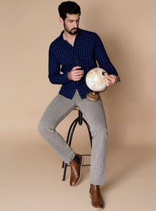 If you like travelling, this shirt is made for you. An everlasting casual check, made from an indigo yarn that gives the shirt a beautiful, irregular color. It's a mid-weight loose weave that works through the year. Looks great when worn individually and also works as a layering piece. We love how the shirt looks with a pair of faded jeans.