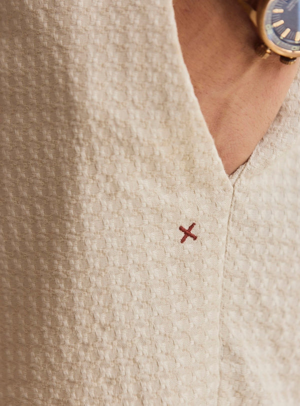 It's designed to feel effortless, with a relaxed fit that drapes gently and a neckline that holds its shape. The texture adds just enough distinction to set it apart from your usual polo, making it incredibly easy to wear.