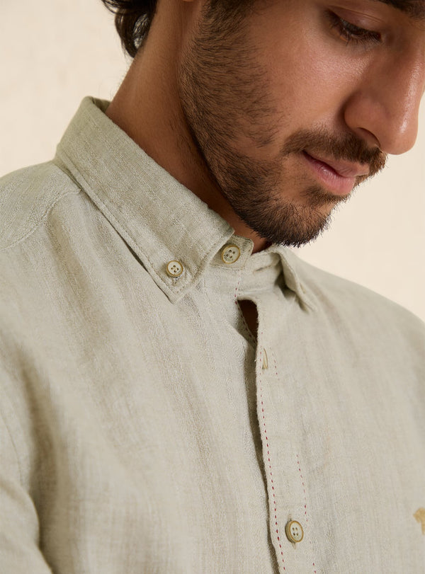 Timeless, soft to touch & naturally breathable. Our iconic linen shirts are back for another season. Crafted entirely from one of Earth's friendliest fibers, linen from European flax in a combination of plain & crepe weave. Features a button-down collar & Rajan, the mark of Andamen.
