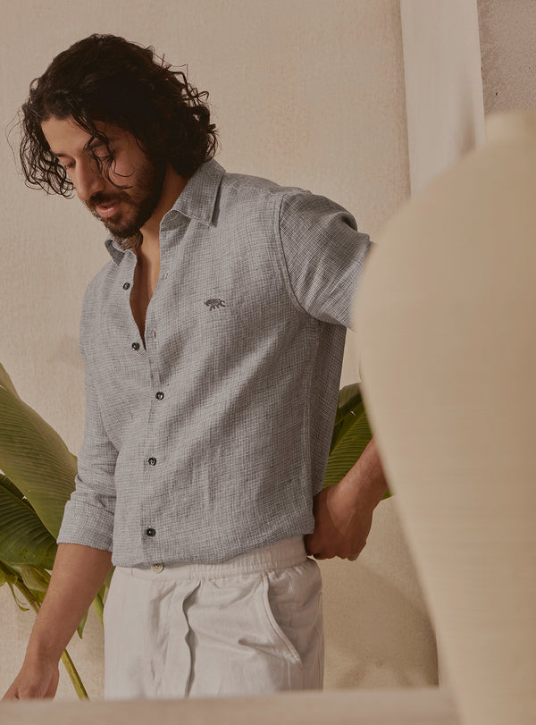 Mist Grey Linen Dobby Shirt