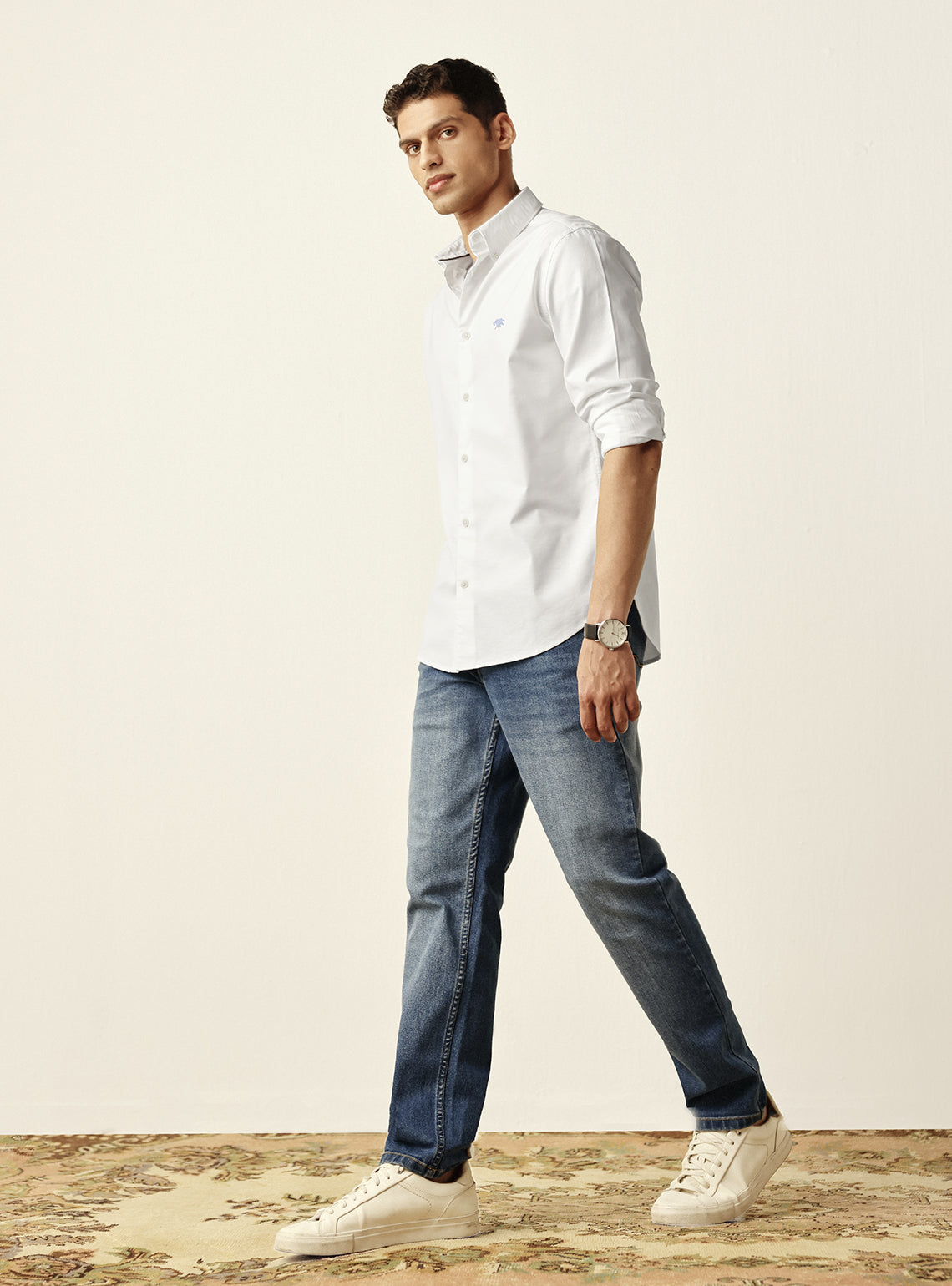 The cotton adds to the softness and the incredible hand-feel of the fabric while the elastane adds enhanced stretch & ensures ease of movement. The signature oxford weave results in a refined fit and superior durability.
