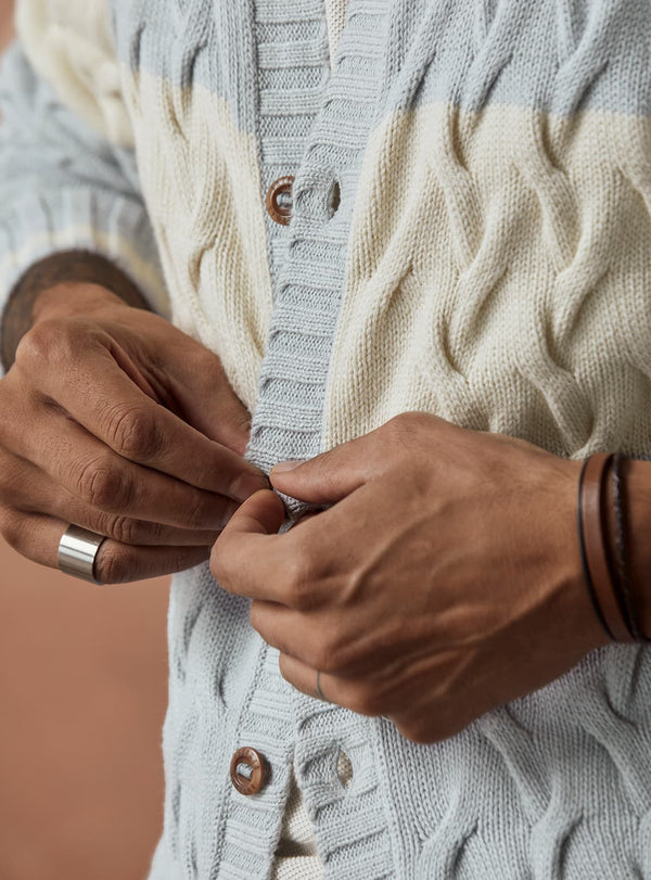 Feast your eyes on some of the toughest styles in our arsenal yet. Built from a cotton & wool blend, instantly increasing its insulating properties, this heavy-duty style is built to weather any storm. Showcases hyper-textures that enhance garment stretch, assist in thermoregulation, & add a lot of character to your pullover. Tested to its limits, this piece will withstand time, lasting for years to come. Features colour block properties, & Rajan, the mark of Andamen.