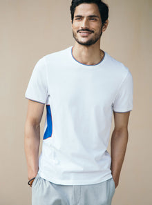 - Contrast tipping detail at sleeve and neck
