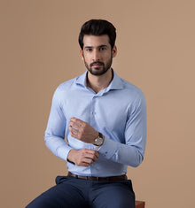 Hey business, we mean business. A classic, timeless business shirt with sublime craftsmanship in what is actually an uncommon pattern. Look closer and you'll find the white dobby check on the blue base.