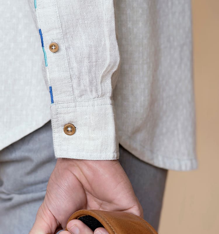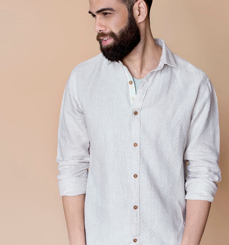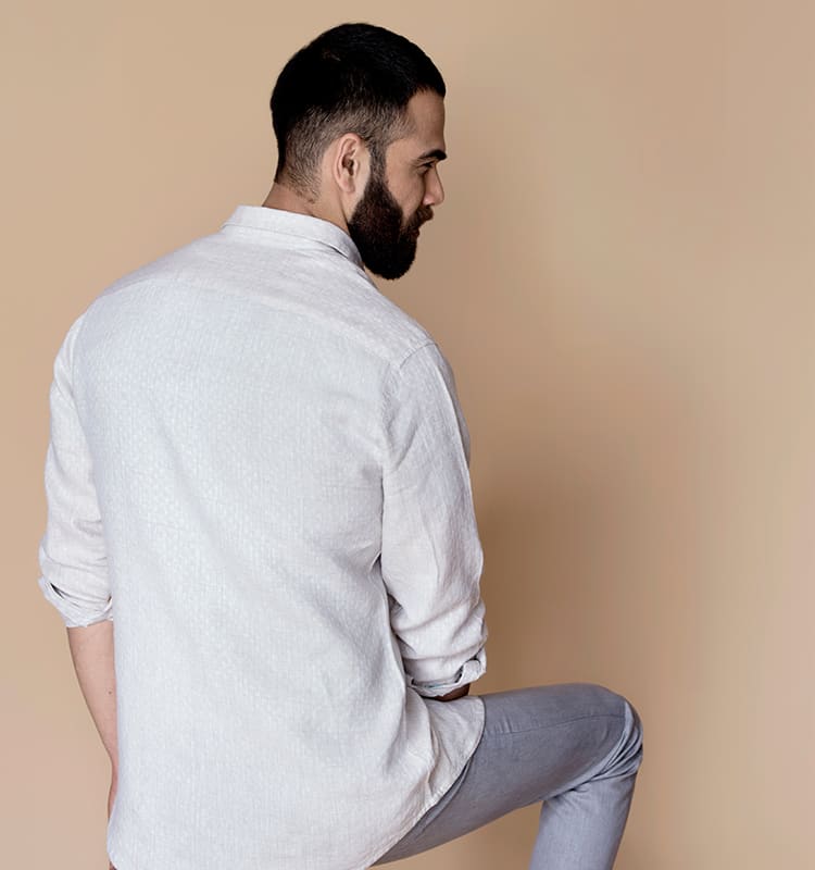 Soft. Earthy. Textural. Colored of the soil and bricks of the Indus Valley, this is your one summer essential if you are getting so specific this year. Woven in a luxurious 70's lea linen, this shirt is airy and breathable and it leaves you feeling relaxed even on a blistering summer day. Precisely colored up, this khaki is versatile and timeless.