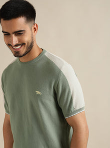 Our signature crews are now back in fresh new colours. Made entirely from a rich Indian cotton, known for its extra long staple fiber, that results in a yarn that is softer, finer & durable. Precisely knitted into a mini honeycomb structure for the right balance between breathability & lightness. Finally, dipped in bio enzymes & finished with a silicon softener to get an ultra-fine, lustrous hand feel. Features colour block design, textural brilliance & Rajan, the mark of Andamen.