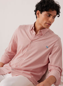 Refined & elevated, our incredibly comfotable knit shirts are back for another season. Made entirely from a rich Indian cotton & precisely spun into a 24s single jersey fabric for the right balance between breathability & lightness. The melange yarn results in a greater degree of colour durability & depth. Dipped in bio enzymes and topped with a silicon softener to get an ultra-fine, lustrous handle. Features a concealed button-down collar & Rajan, the mark of Andamen.