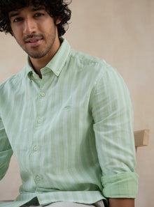 Presenting a timeless shirt made from a rich Indian cotton, MCU-5, in a double cloth fabric. The double cloth is made by linking two light layers of fabric, that effortlessly doubles the strength while still keeping it breathable & airy. Featuring Rajan, the mark of Andamen.