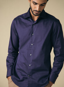 A structured shirt in a mid-weight fabric designed for formal occasions. Pairs easily with a suit and jacket or with formal trousers. Designed with half cut away collars and chiselled cuffs with insignia waves so you look more elevated for special occasions.