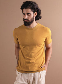 A vibrant flat knit tee in a superb blend of cotton-nylon, where the top of the tee is cotton and the underside is nylon for greater softness. The flat knit feels lighter than a regular tee, has more stretch and is also more comfortable. It drapes incredibly well on the body, making it perfect for travel, daily wear and casual hangouts.