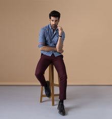 Blue men's casual check shirt