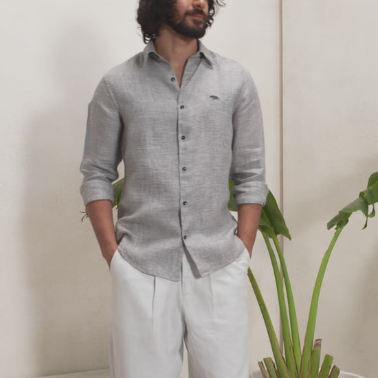 Mist Grey Linen Dobby Shirt