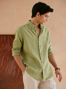 Made from 100% European linen, this shirt brings together purity and purpose. The fabric, European Linen, is woven from Belgian flax that grows with rainwater alone & is naturally breathable, soft, and strong.