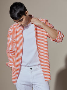 This shirt is meticulously crafted from cotton in a plain weave, ensuring comfort and breathability. Designed in a full-sleeve silhouette, it not only provides sophistication but also features a cutaway collar, stripes, & Rajan, the mark of Andamen.