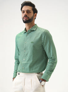 This shirt is meticulously crafted from cotton in a dobby weave, ensuring comfort and breathability. Designed in a full-sleeve silhouette, it not only provides sophistication but also features a cutaway collar, checks, & Rajan, the mark of Andamen.