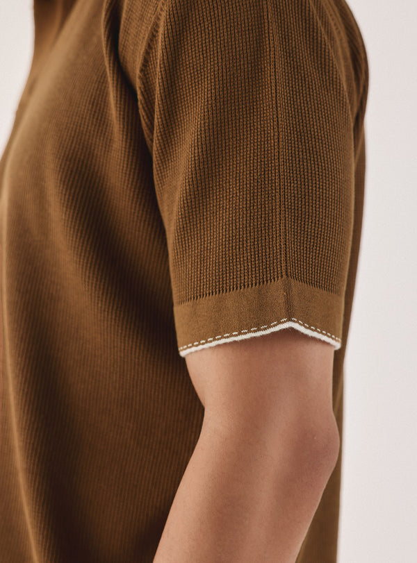 Woven from 100% Indian cotton of remarkable purity, this textured polo delivers understated refinement. Naturally soft and breathable, the fabric offers a smooth, enduring wear. It resists fraying, minimises creasing, and holds its colour over time.