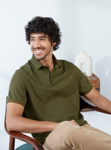 Our iconic Persona polos, now in a special melange yarn. Made from 100% Supima Cotton, in a superfine 50s interlock. The melange yarn achieves a greater degree of color durability, resulting in an enhanced color depth & vibrancy. Dipped in bio enzymes & topped with silicon softener to get an ultra fine & lustrous handle. Features intricate tipping on the sleeve and neck.