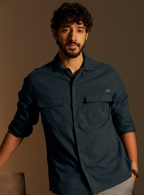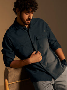 Crafted from a blend of cotton, the superior quality of the yarn combined with our meticulous craftsmanship ensures your garment is as comfortable as it is long-lasting. With the addition of lycra, this overshirt has enhanced stretch, & is designed to feature pocket-play elements.