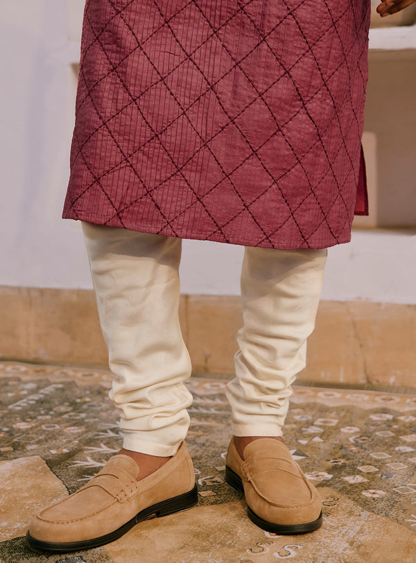 A classic silhouette rooted in Indian heritage, the Badal Viscose-Silk Pyjama blends ultra-soft viscose with silk for a rich and elegant look. Crafted in an off-white hue, these pyjamas exude a timeless appeal, ideal for various settings. The fabric offers a smooth, indulgent feel and features full elastication for comfort, along with convenient pockets.Pair these churidar pyjamas with your favourite kurtas for an intimate celebration or a relaxed evening at home. Built on a legacy of excellence, each hand-crafted piece features minor variations in shade and texture, making it truly one-of-a-kind.Part of the MIRAI collection, where contemporary styling meets heritage fashion.